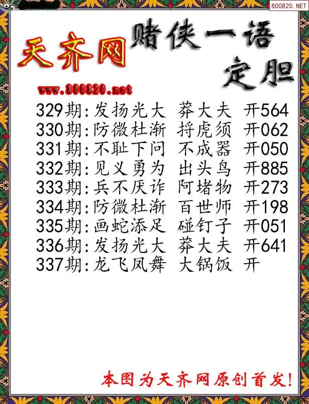 337期[彩3D赌侠一句定三码字图谜