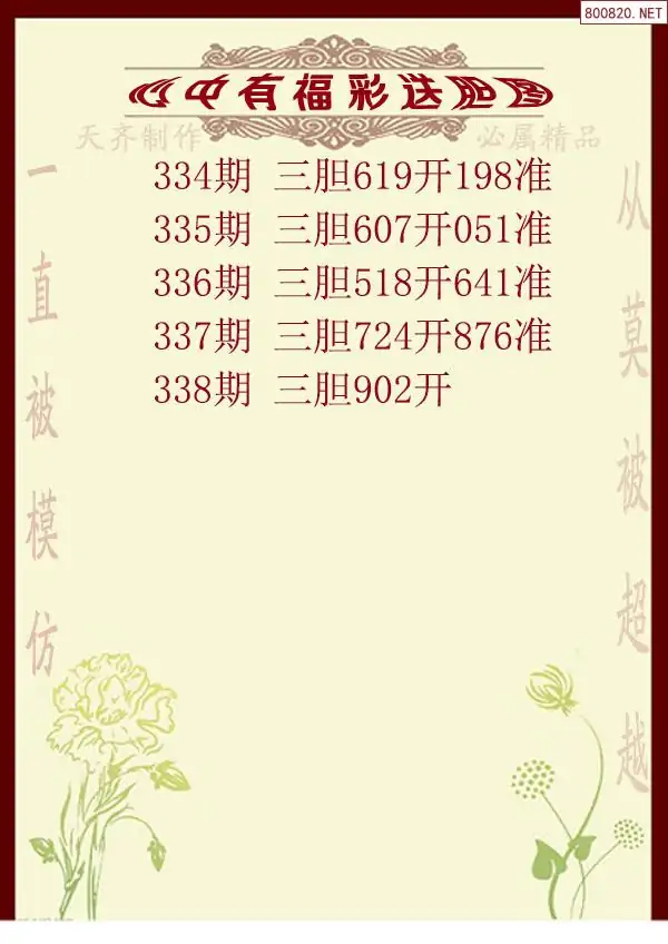 2025年338期心中有福福彩送胆图谜(天齐网原创)