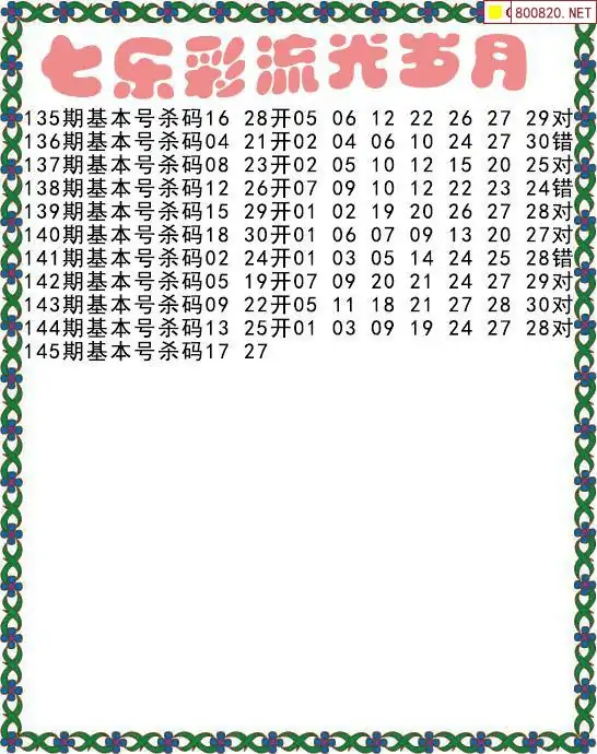 七乐彩2025145期流光岁月杀码图迷