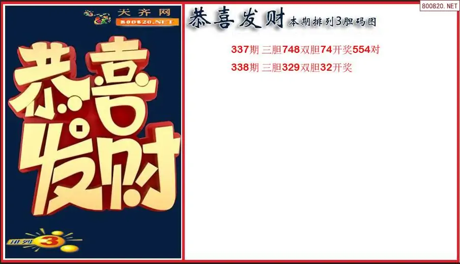 恭喜发财2025338期本期排列3胆码图(原创)
