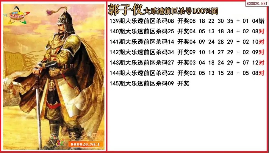 郭子仪2025145期大乐透前区杀号100%图-原创