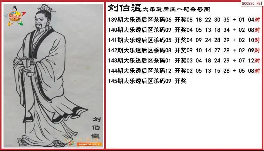 刘伯温2025145期大乐透后区一码杀号图-原创