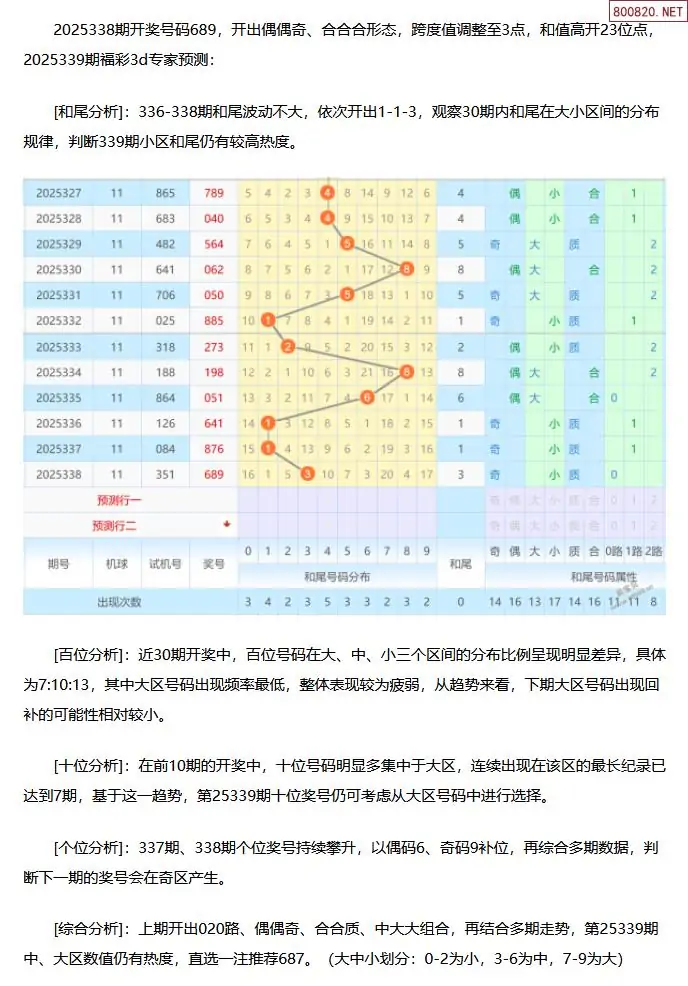 福彩3D第2025339期[玩彩高手]最准最新3d号码预测