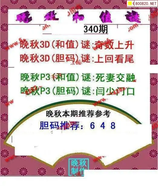 晚秋图25340期3d晚秋和值迷图谜版