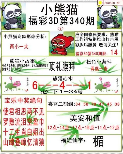 小熊猫25340期美安和值+一句定三码3d图谜