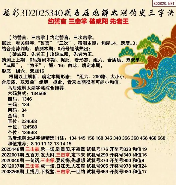 25年340期马后炮解太湖字谜之-约誓言 三击掌 破咸阳 先者王