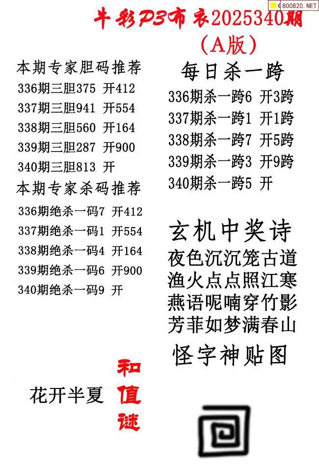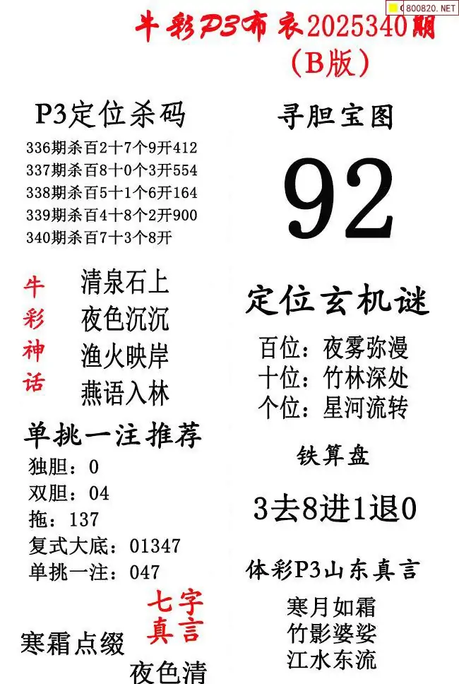 牛彩体彩P3布衣2025年340期AB版图谜(精华版)