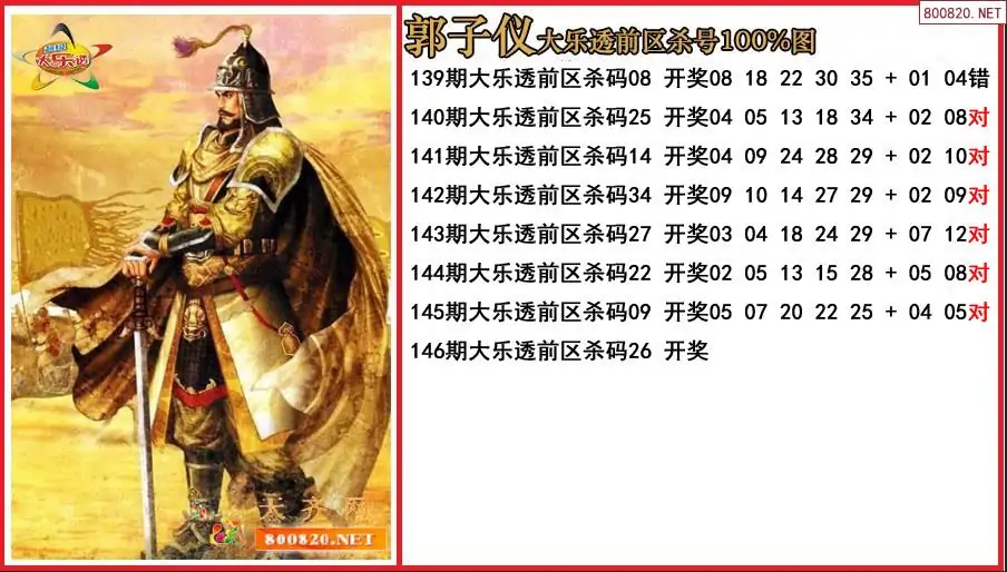 郭子仪2025146期大乐透前区杀号100%图-原创