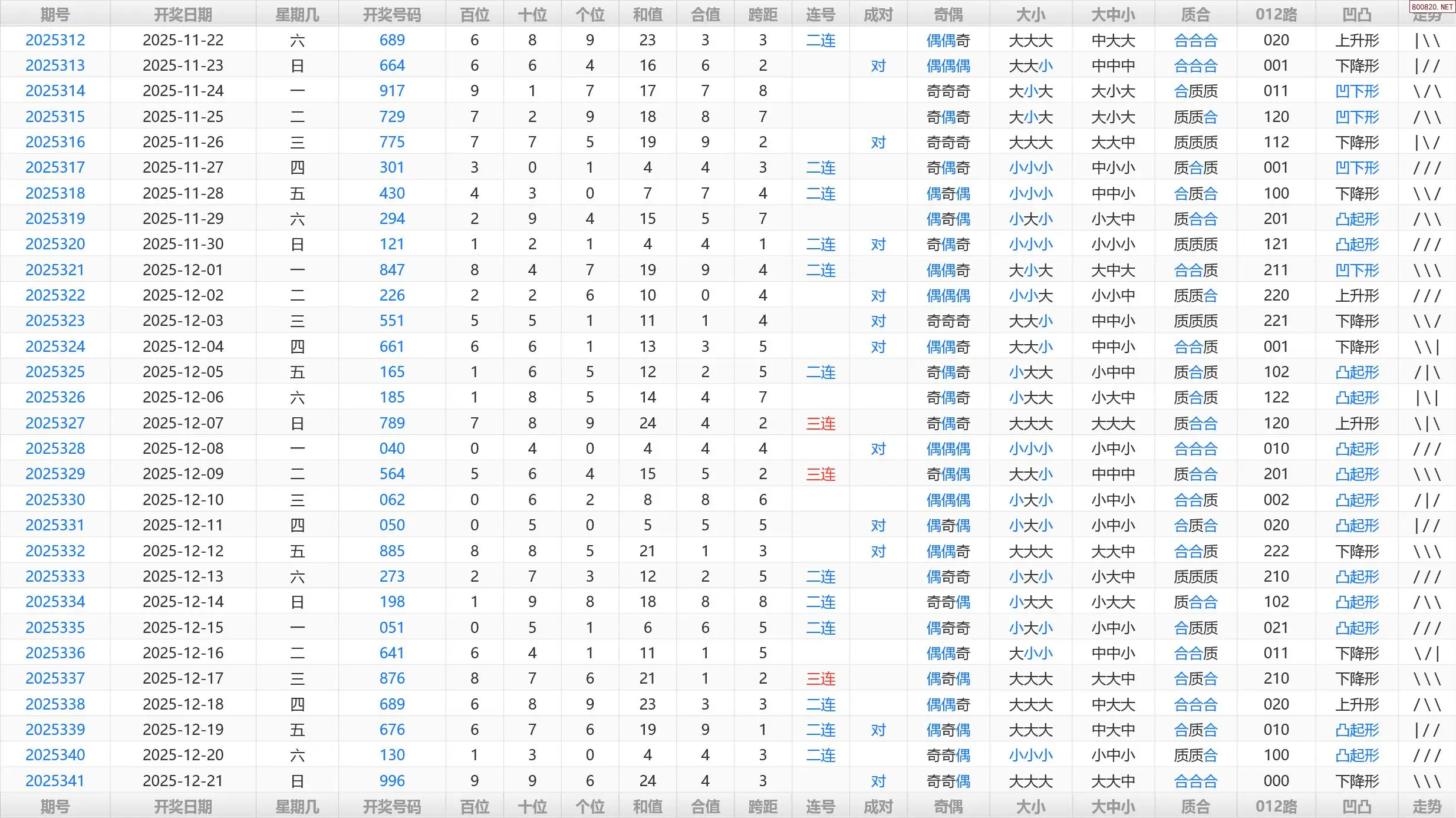 342期福彩3D历史开奖号码统计表