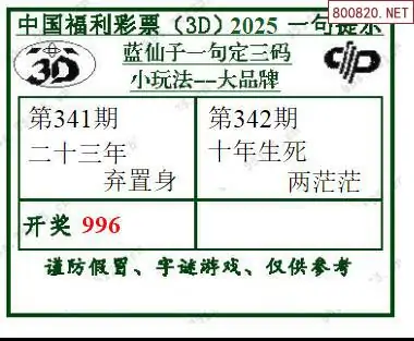 2025342期蓝仙子一句定三码3d图谜