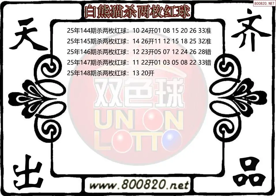 白熊猫25年148期双色球杀两枚红球图谜