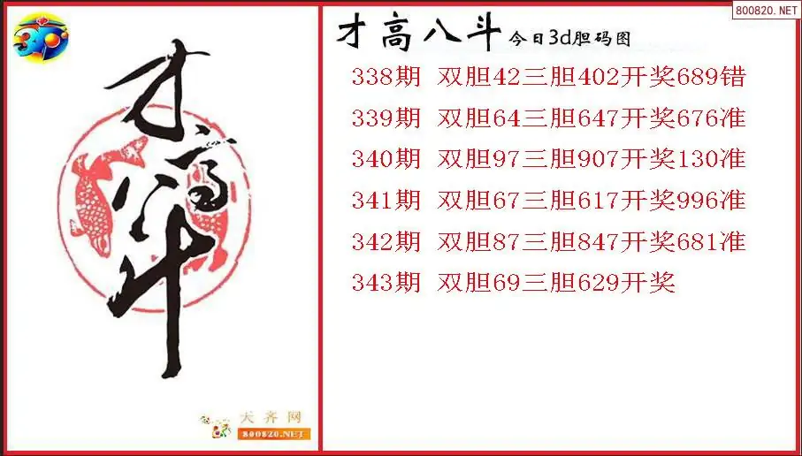 才高八斗2025343期今日3d胆码图(原创)