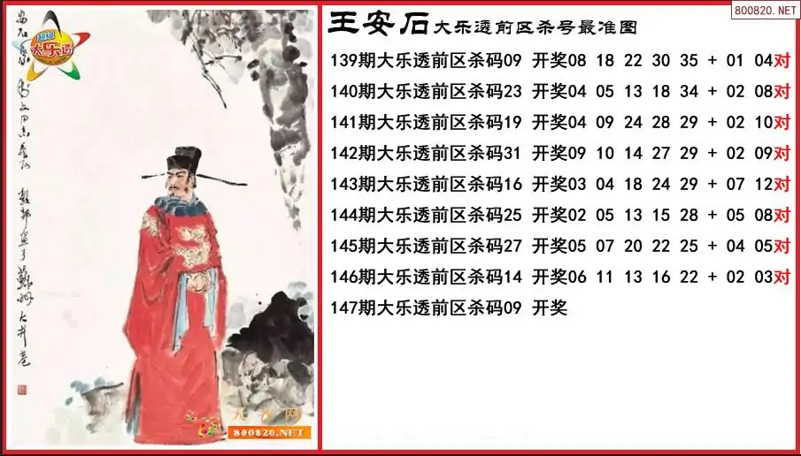 王安石2025147期大乐透前区杀号最准图-原创
