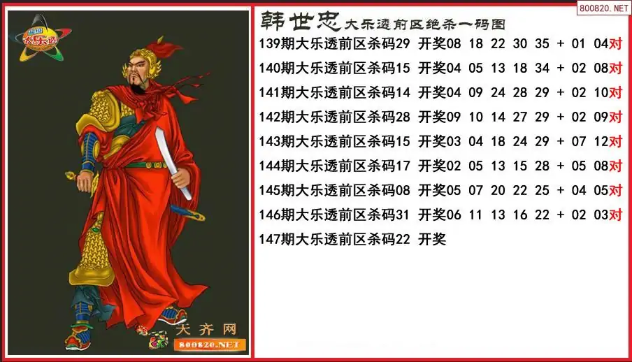 韩世忠2025147期大乐透前区绝杀一码图-原创