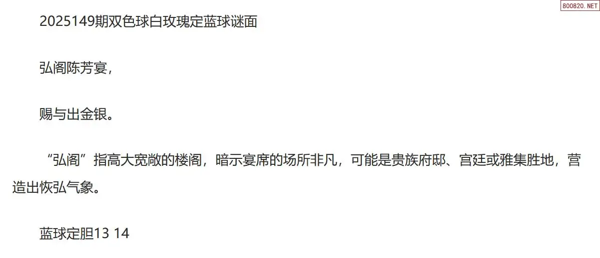 双色球25149期白玫瑰定蓝球字谜