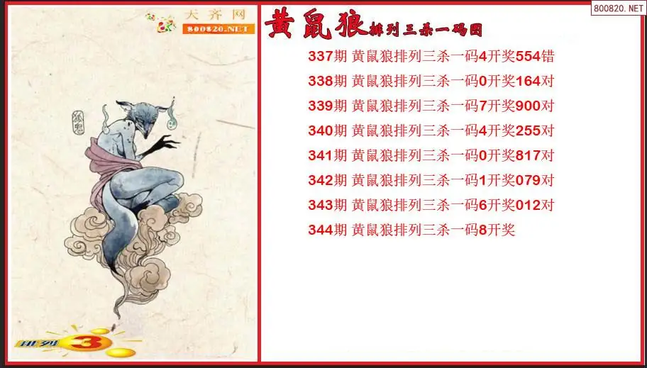 排列3第2025344期黄鼠狼杀一码图(原创)