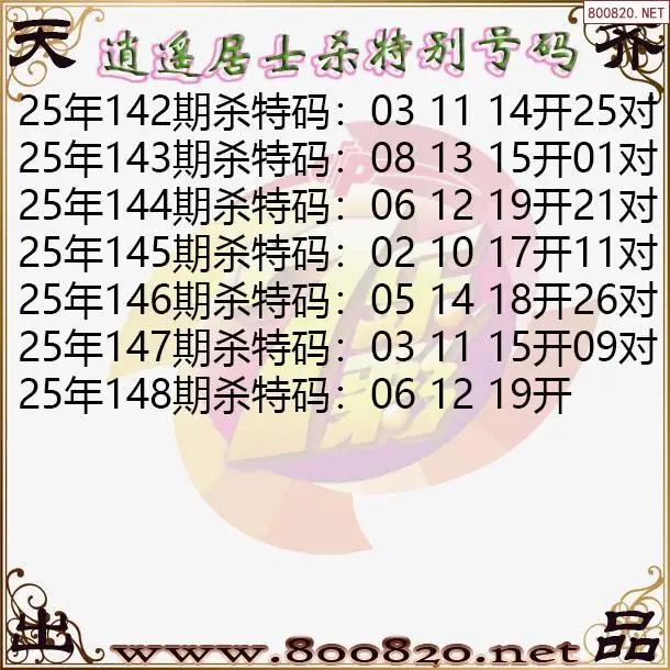 2025年钟馗148期七乐彩杀特别号码图