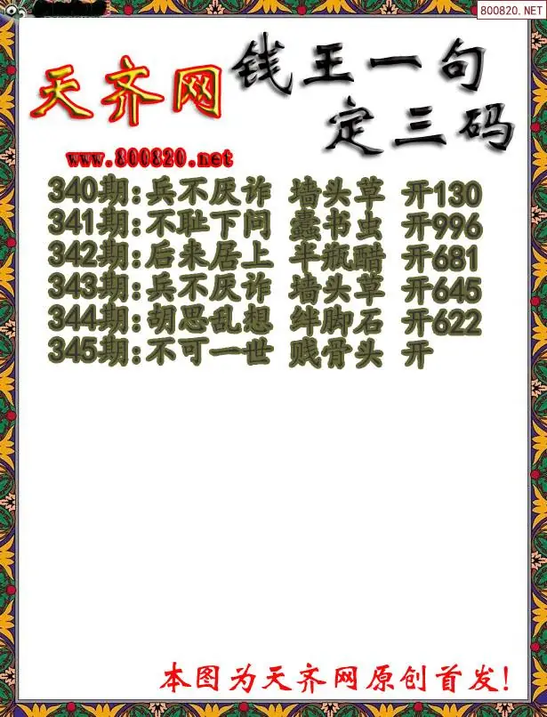 345期钱王3D一句定三码字图谜