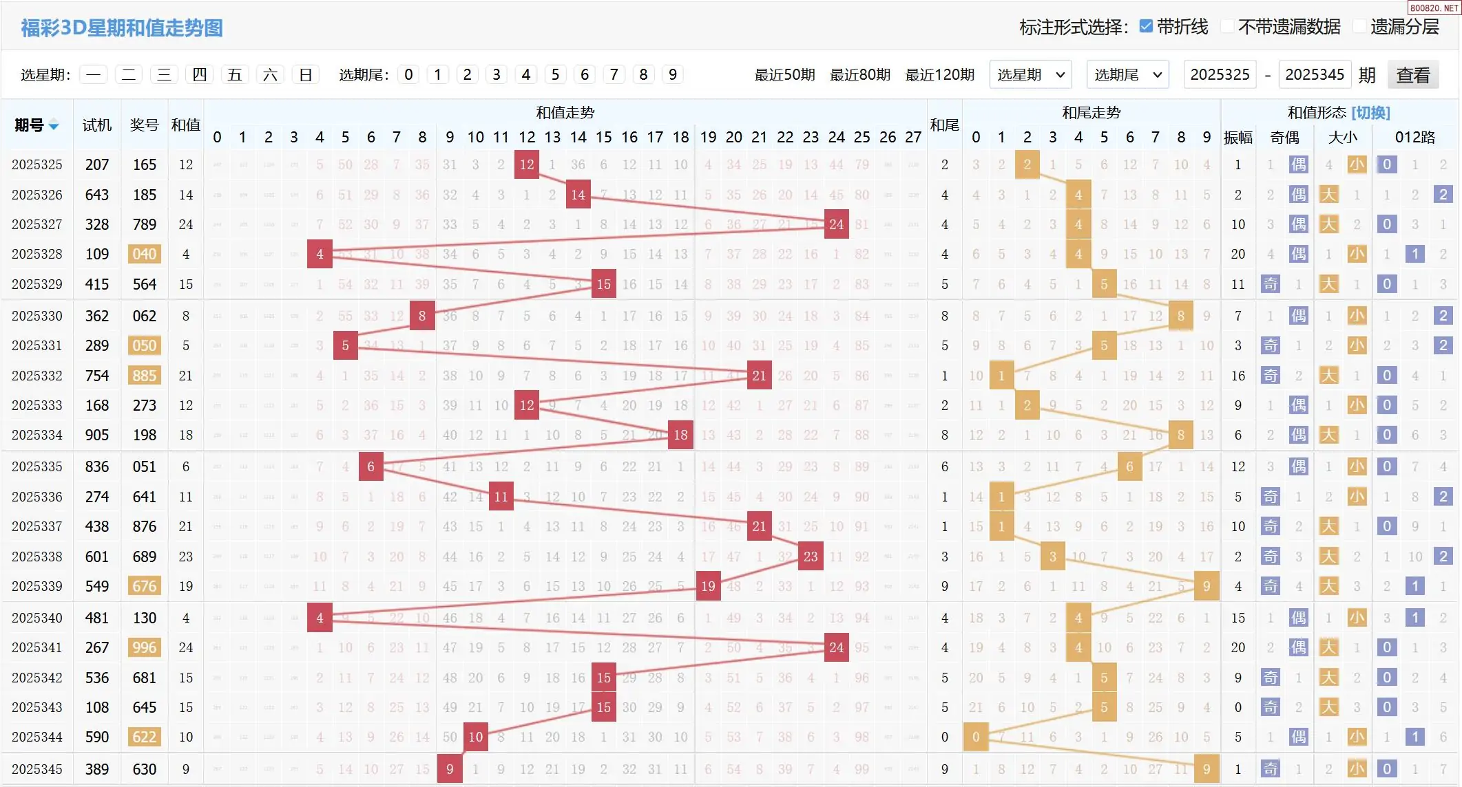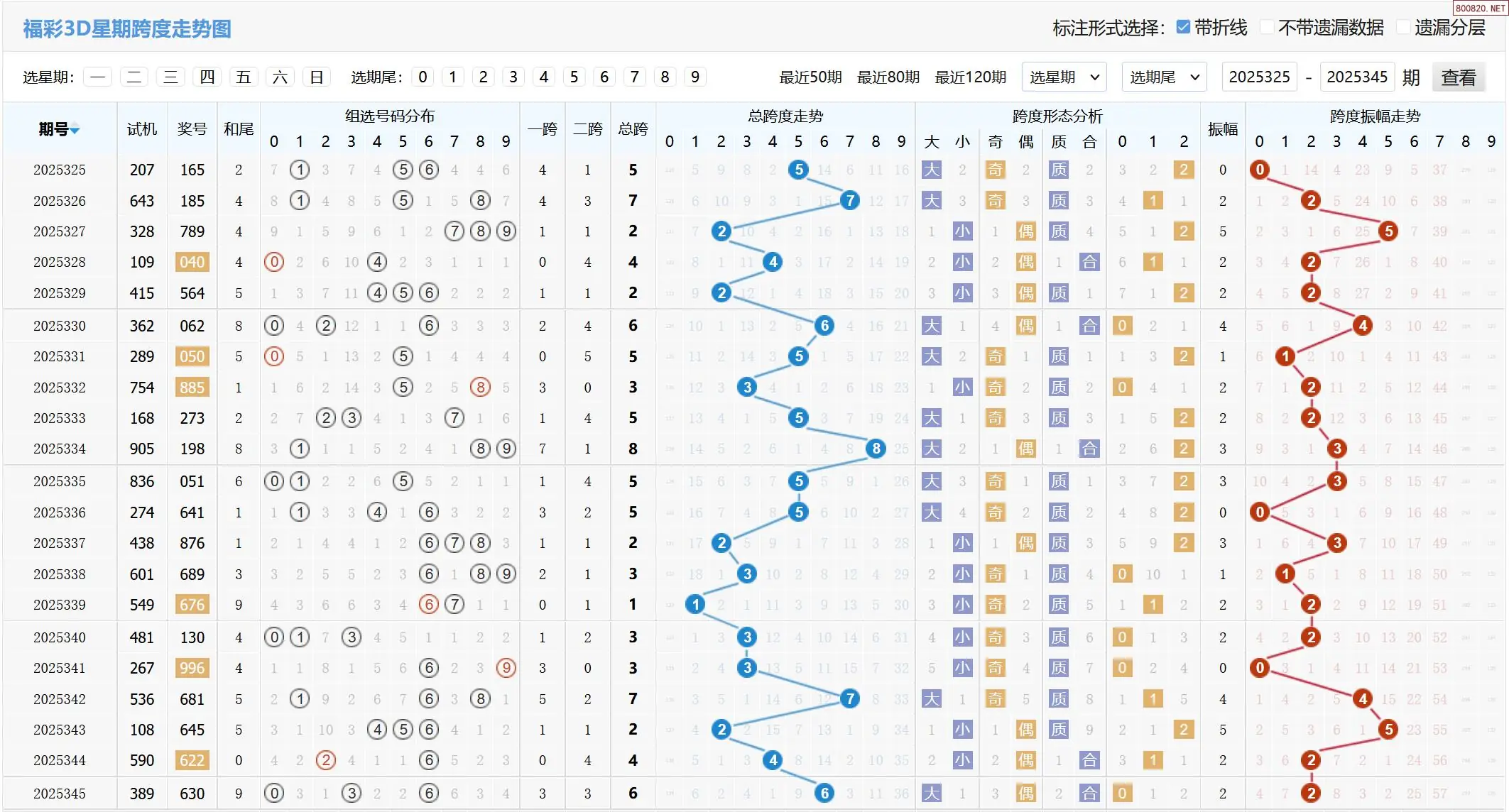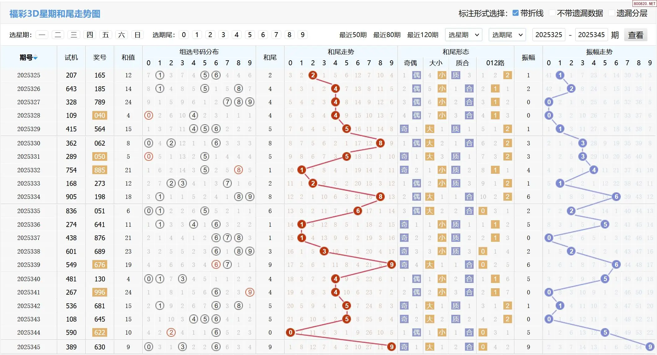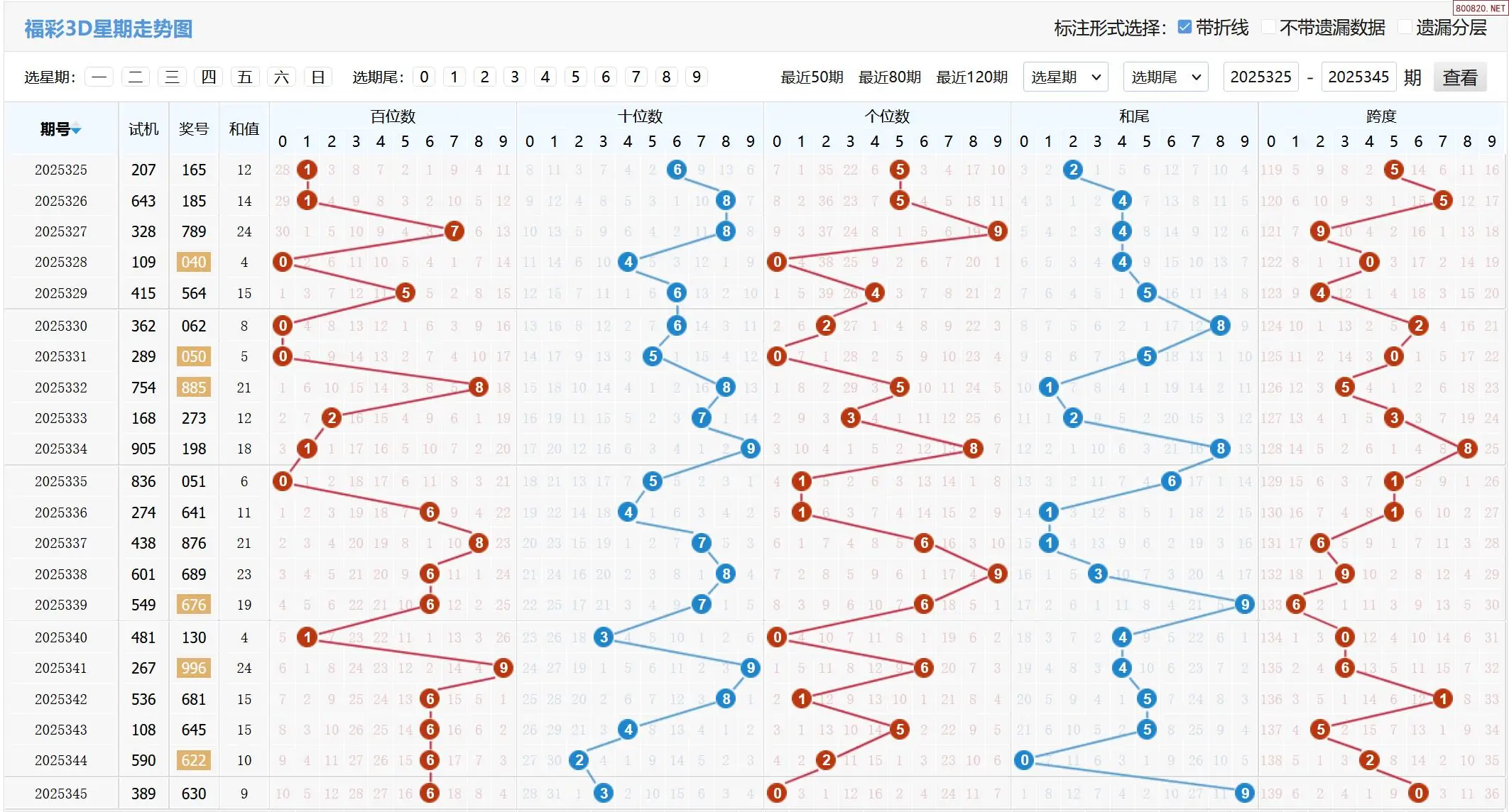2025346期福彩3D基本走势图如下: