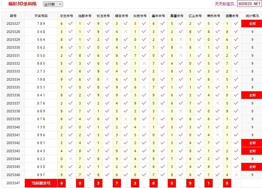 25347期彩宝贝福彩3D杀和尾