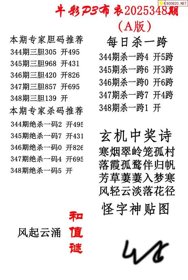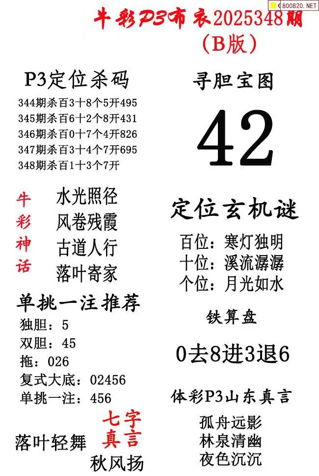 牛彩体彩P3布衣2025年348期AB版图谜(精华版)