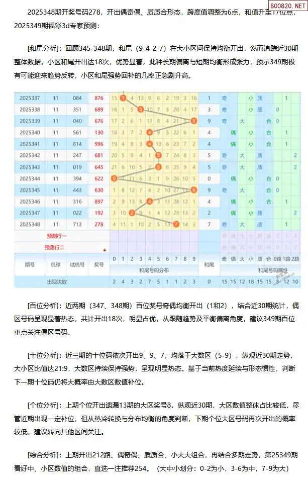 福彩3D第2025349期[玩彩高手]最准最新3d号码预测