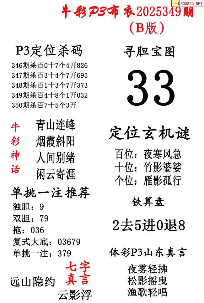 牛彩体彩P3布衣2025年350期AB版图谜(精华版)