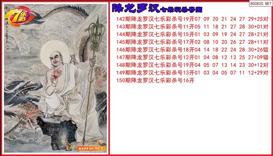 七乐彩2025150期降龙罗汉杀号图