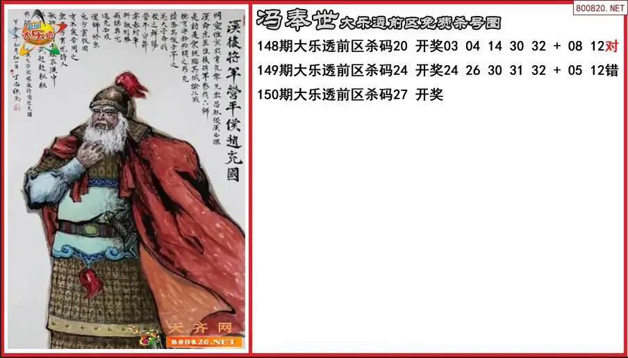 冯奉世2025150期大乐透前区免费杀号图-原创