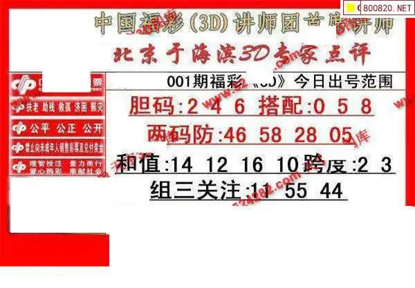 001期于海滨福彩3D专家点评(图迷版)