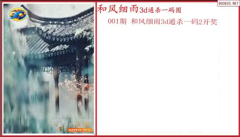 和风细雨2026001期3D通杀一码图(原创)