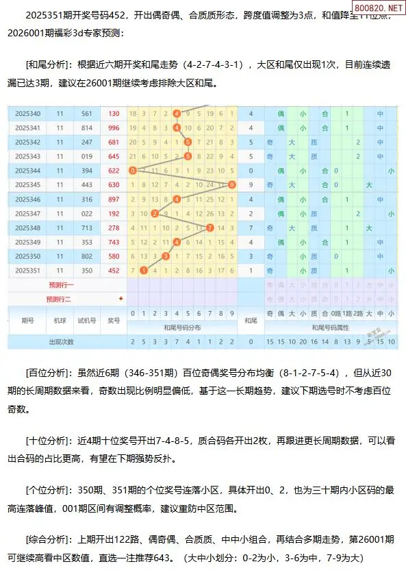 福彩3D第2026001期[玩彩高手]最准最新3d号码预测