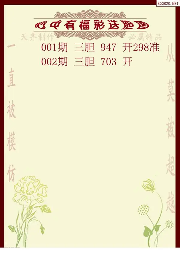 2026年002期心中有福福彩送胆图谜(天齐网原创)