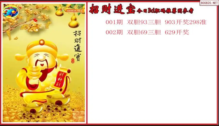 招财进宝2026002期今日3d胆码推荐图参考(原创)