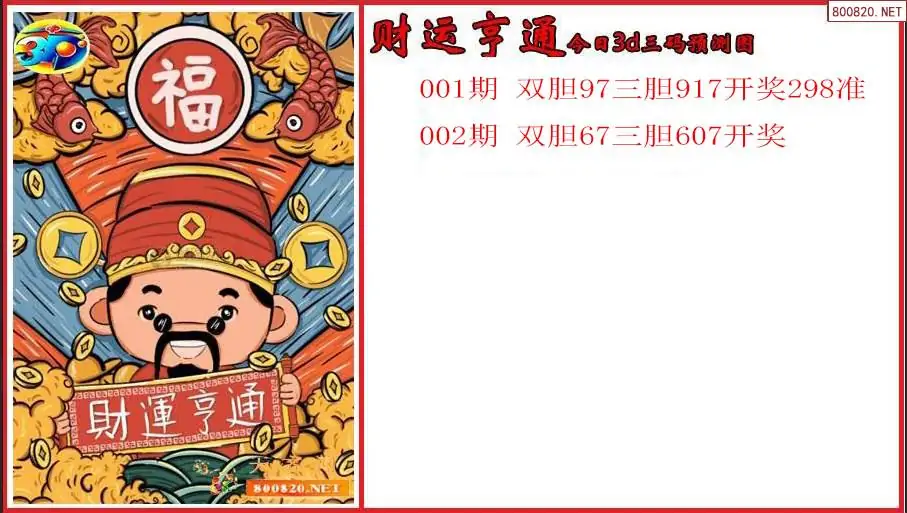 2026年财运亨通002期今日3d三码预测图(原创)