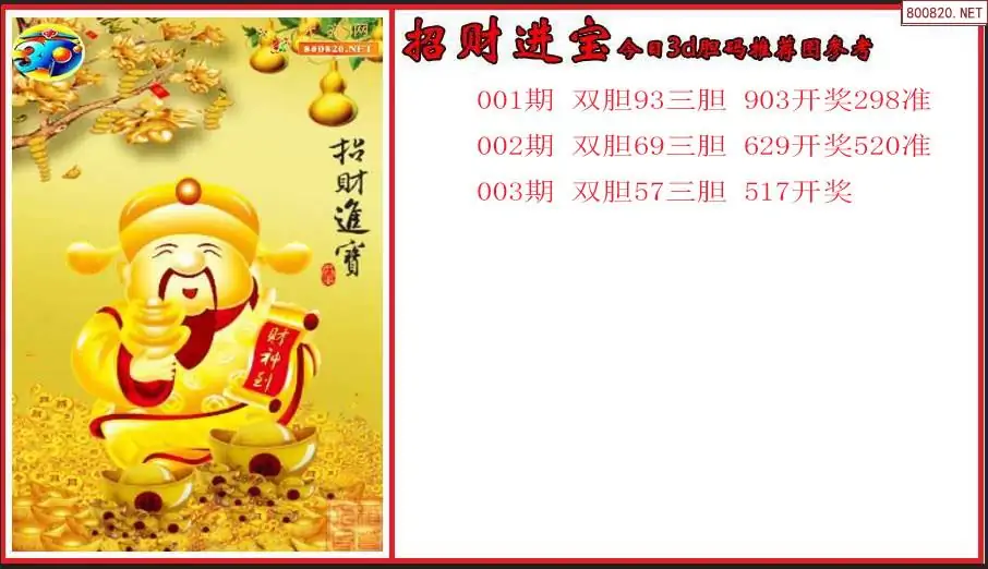 招财进宝2026003期今日3d胆码推荐图参考(原创)