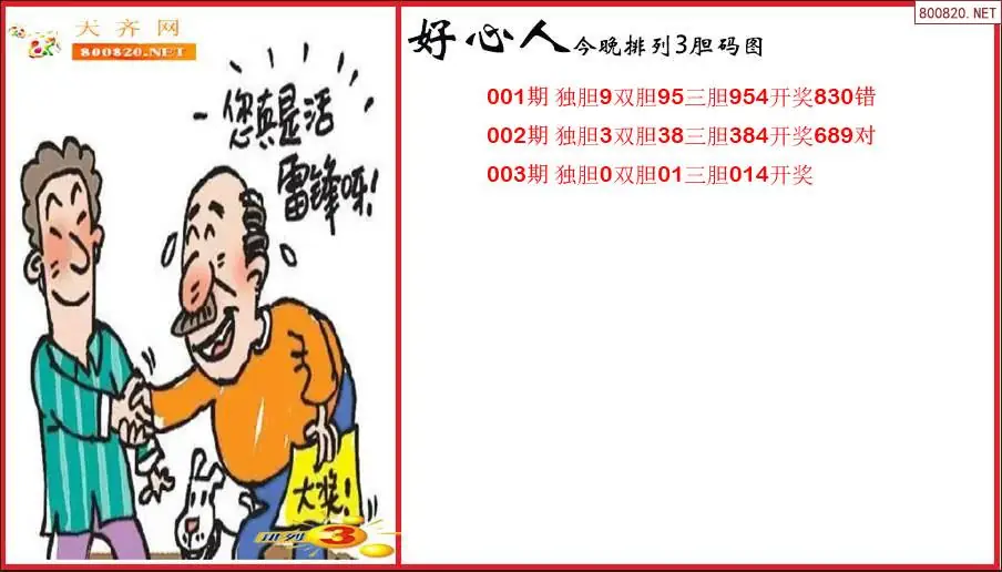 好心人2026003期今晚排列3胆码图(原创)