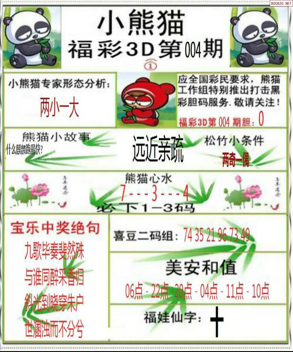 小熊猫26004期美安和值+一句定三码3d图谜