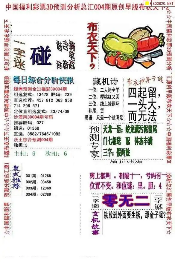 2026年004期3d字谜图谜总汇