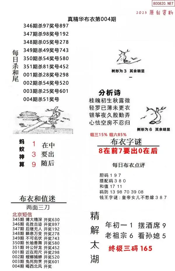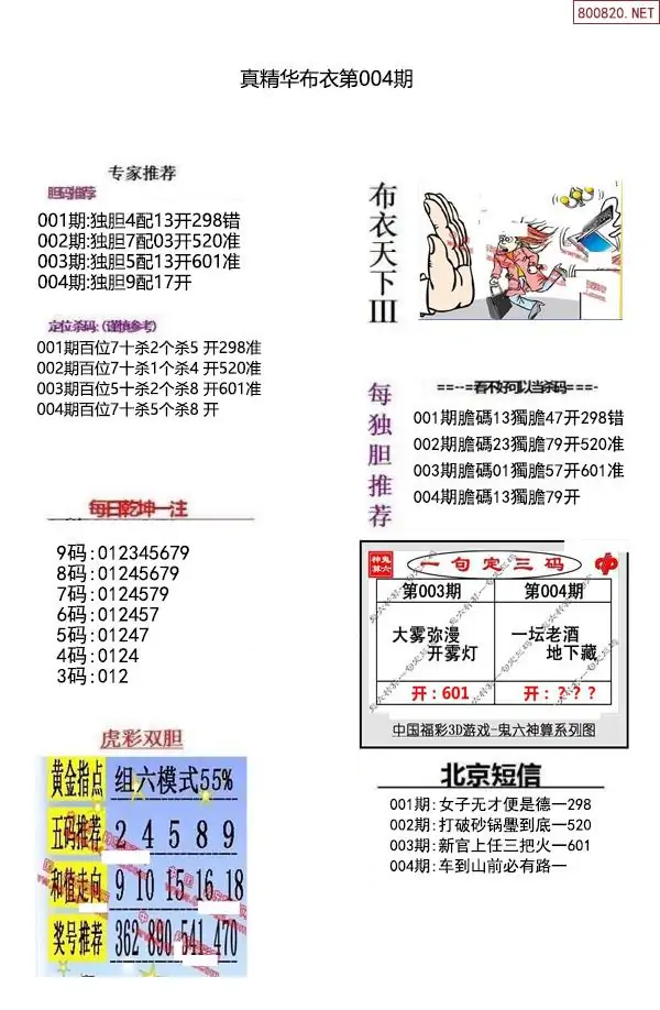 布衣图004期布衣定位杀+布衣神算图迷