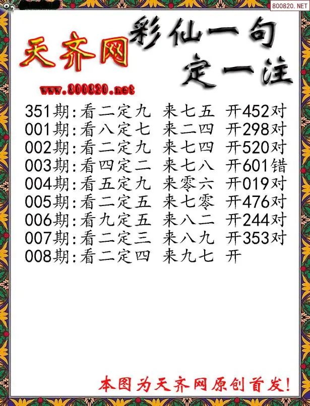 008期彩仙一句定三码3D字图谜