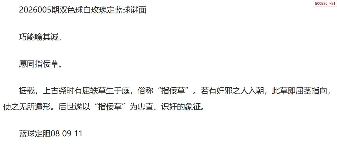 双色球26005期白玫瑰定蓝球字谜