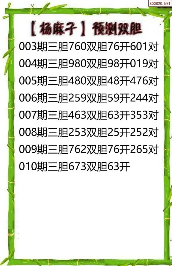 26010期杨麻子福彩3D胆码图谜
