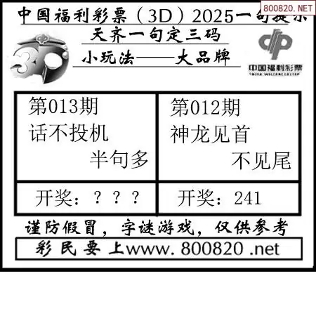 您现在所在的位置: 天齐网 >> 福彩3D >> 3D图谜 >> 正文