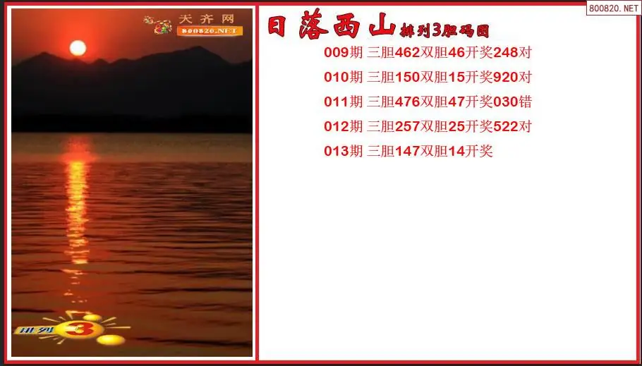 日落西山2026013期排列3胆码图谜(原创)