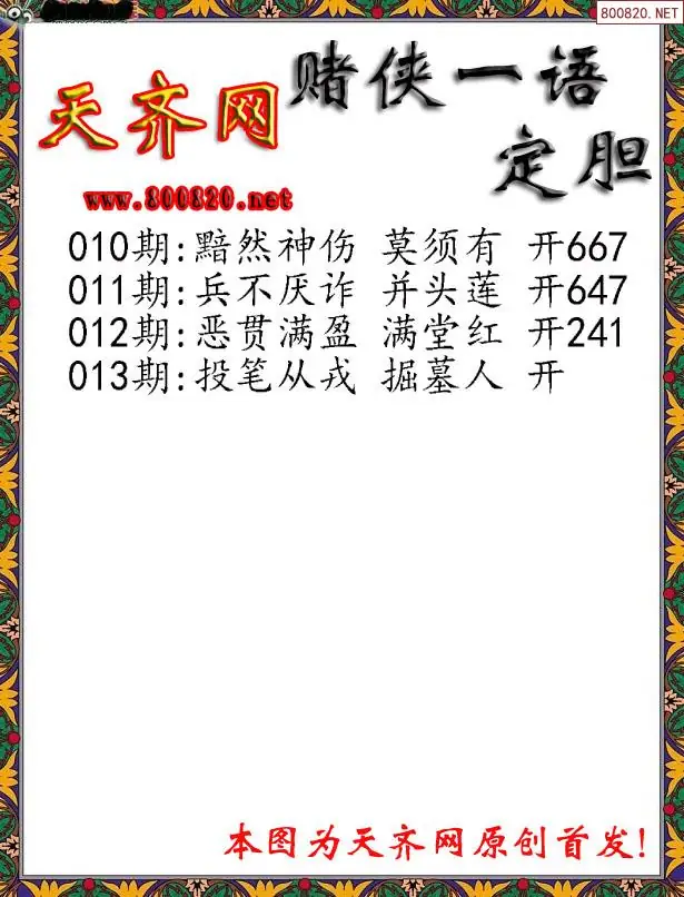 013期[彩3D赌侠一句定三码字图谜