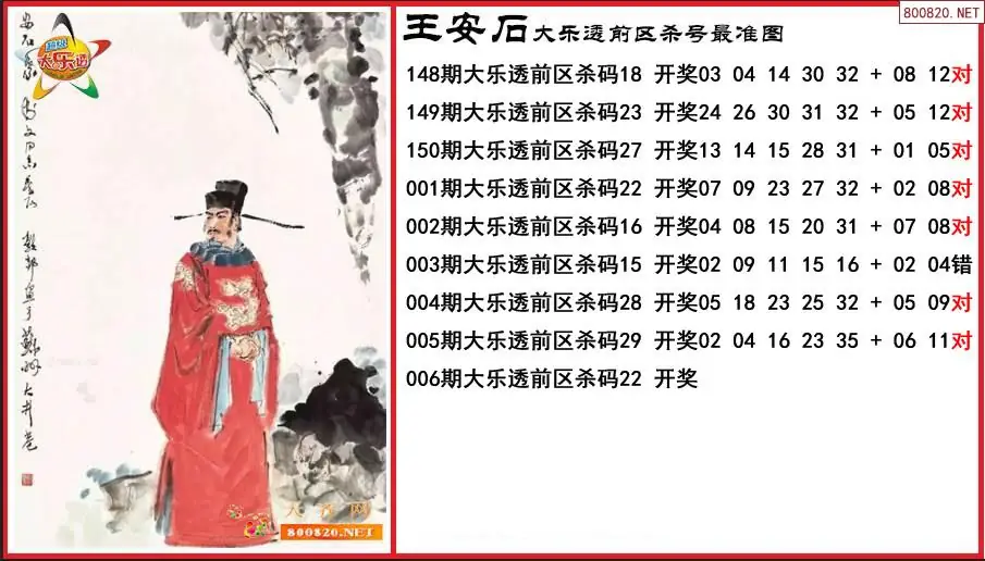 王安石2026006期大乐透前区杀号最准图-原创