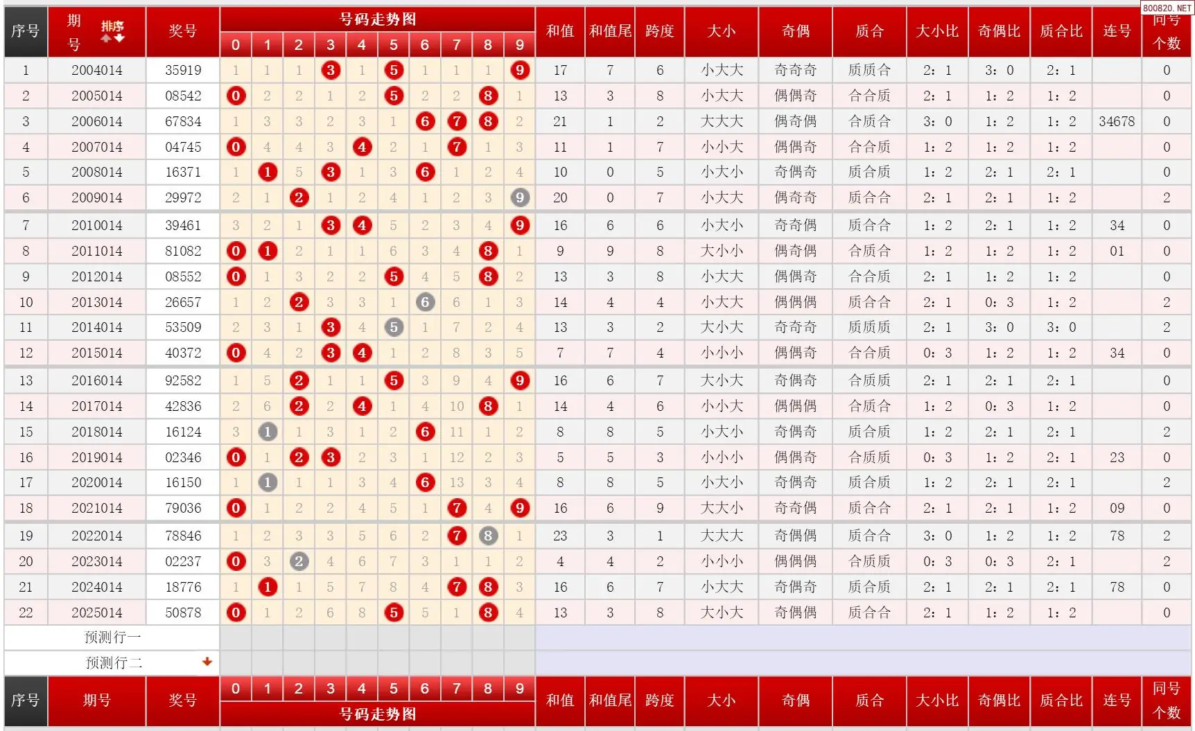 3 014期体彩P3历史同期对比图表+近期