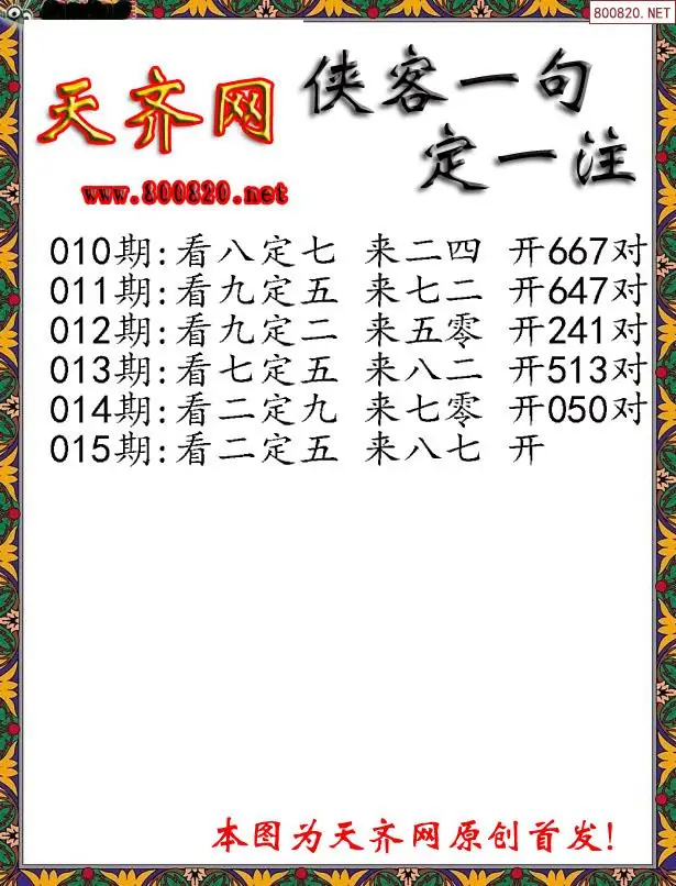 015期侠客一句3D定三码字图谜