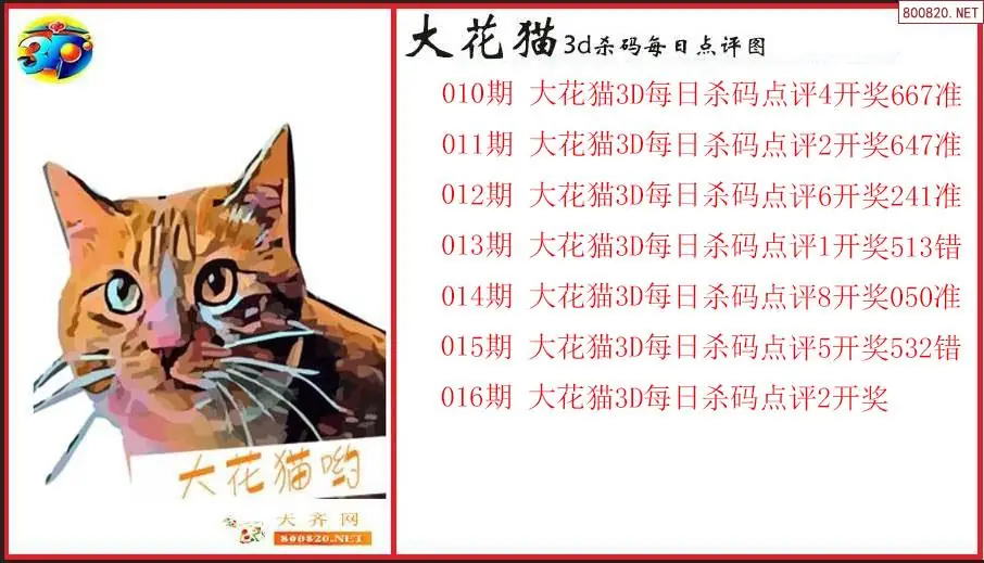 大花猫2026016期3d杀码每日点评图(原创)